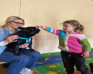Волонтерська робота у центрі для дітей-переселенців «Повертаємо в життя» на базі гуртожитку Обласного коледжу «Кременчуцька гуманітарно-технологічна академія імені А.С. Макаренка» з метою створення позитивної атмосфери, зони психологічного комфорту для дошкільників, використання анімал-терапії під час взаємодії із домашніми тваринами.