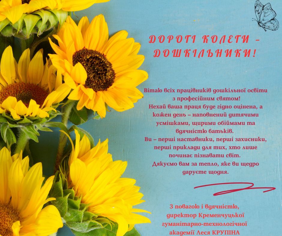 Вітаємо з Днем дошкілля та 65-річчям спеціальності «Дошкільна освіта» Кременчуцької гуманітарно-технологічної академії!