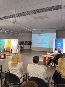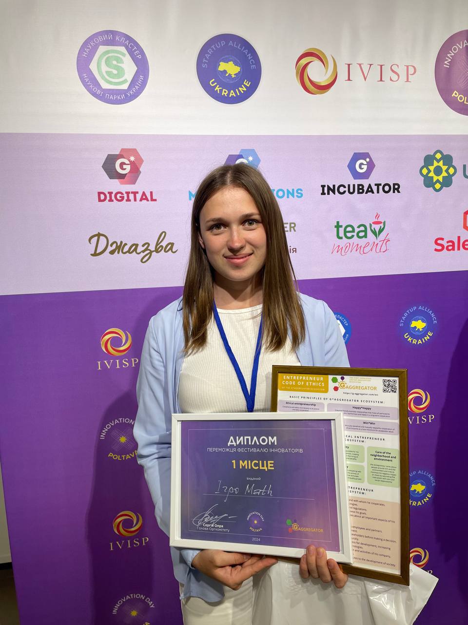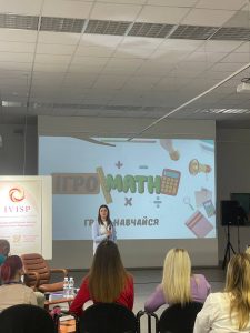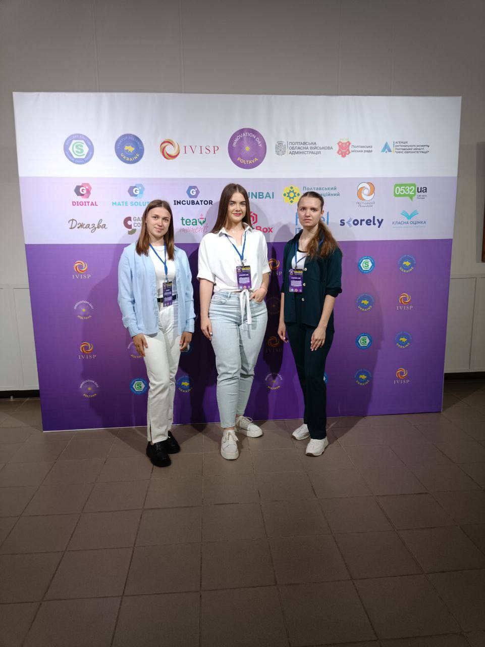 Наша делегація долучилася до заходу не лише як учасниця. Команда у складі Наталії ДЕНЬГИ, доцента кафедри початкової освіти, гуманітарних дисциплін та інформатики, здобувачок освіти Тетяни ВЕРТЕБНОЇ та Каріни СІРИК пройшли відбір із стартапом ІгроMath та потрапили до фіналу, у якому беруть участь 12 команд.