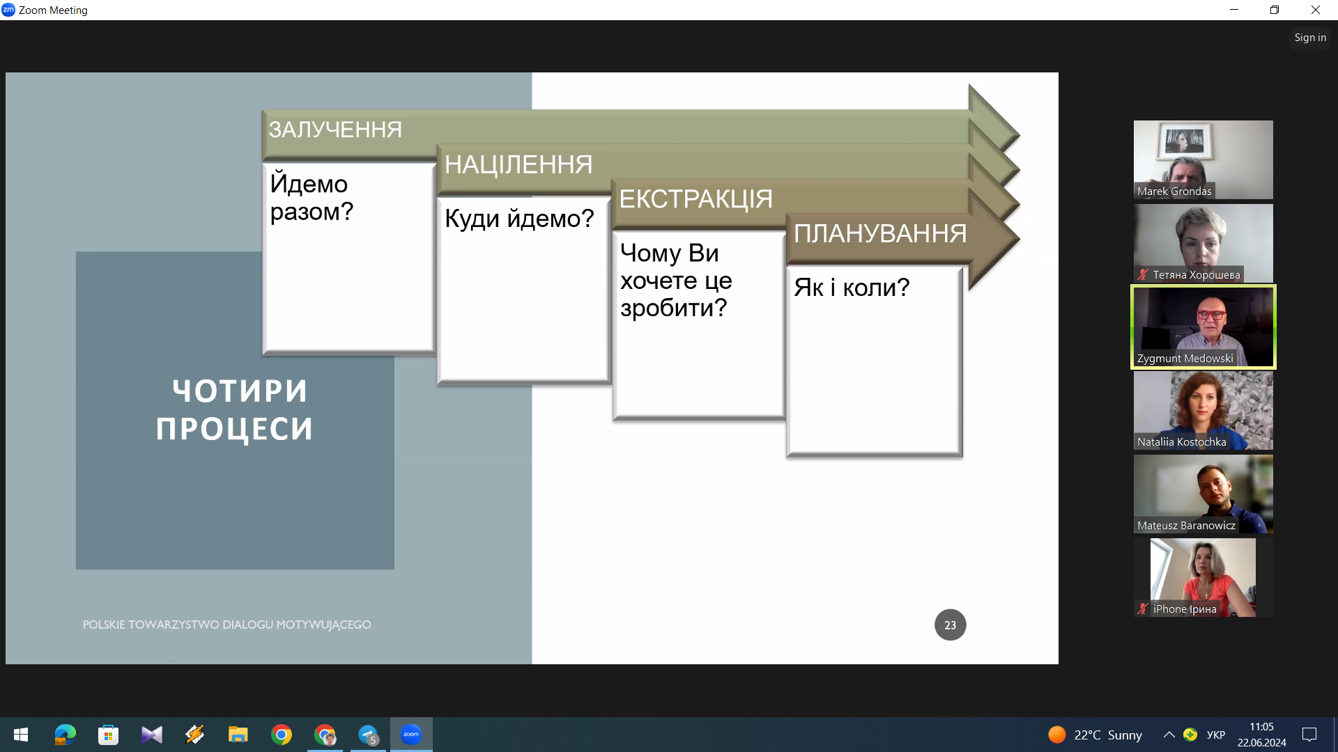 22-23 червня відбувся онлайн захід для українських фахівців( “пілотний” пробний) ознайомчий за методом Мотиваційного інтервʼю. Від Полтавської області було 5 осіб, серед яких соціальний педагог академії Марина ФЕДОТА.
