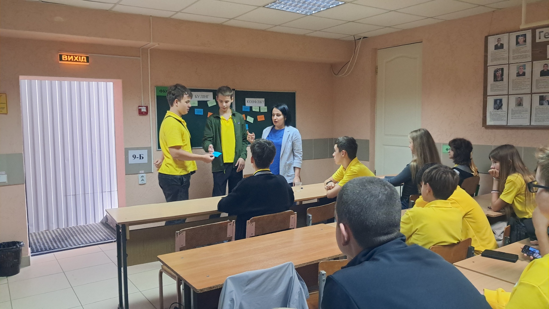 Разом учні й учениці дослідили складові булінгу та конфлікту, навчилися розпізнавати відмінності між ними за чіткими маркерами, узяли участь у пізнавальній картковій грі «Створюй коло безпеки. Інформуй про (не)насильство».