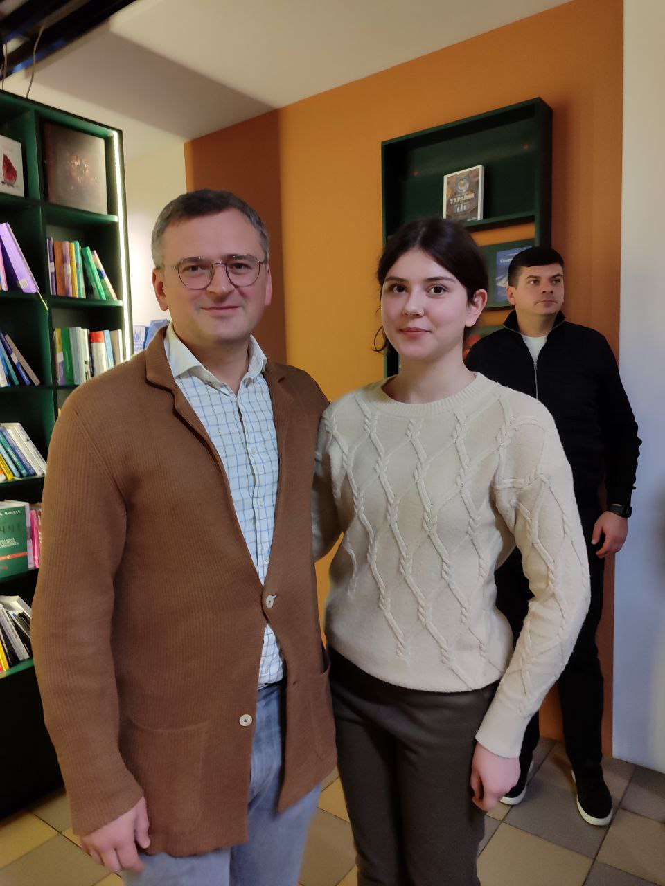 На зустрічі серед гостей були представники молодіжної дипломатії, а також наші студентки,учасниці гурту “Рутенія” Ангеліна Бакай та Вікторія Омельяненко. Дмитро Кулеба поділився власним досвідом професійного росту, дав поради щодо досягнення особистих цілей, самореалізації та наполегливої праці над собою . Жива розмова завершилася відповідями на численні запитання молоді.