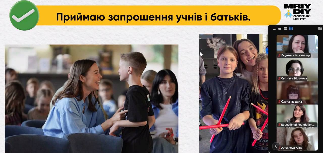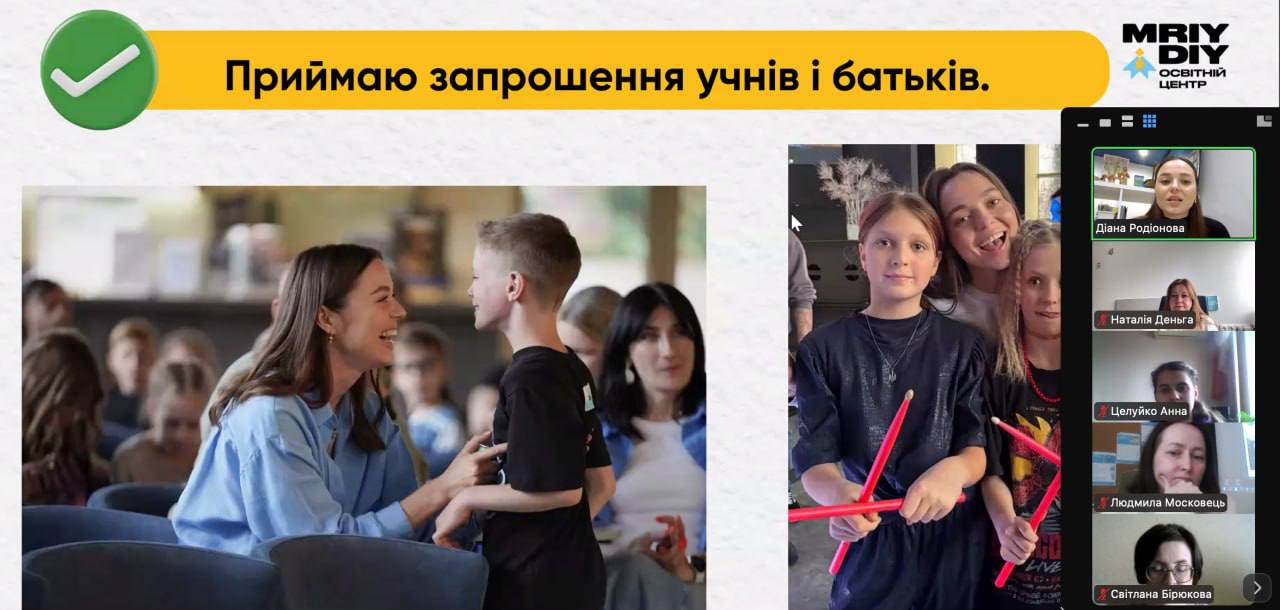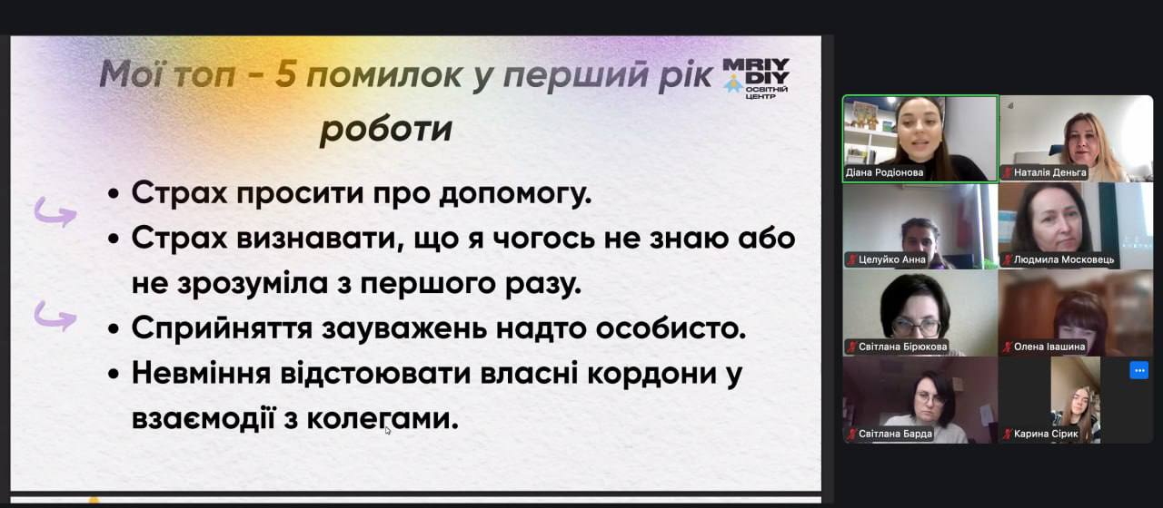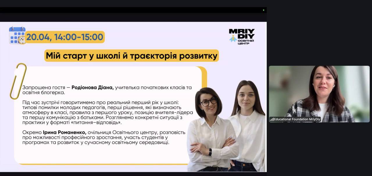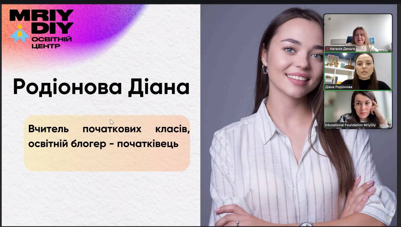 Гостею заходу стала наша випускниця — Діана Родіонова, учителька початкових класів та освітня блогерка, яка поділилася власним досвідом старту професійної діяльності в школі.