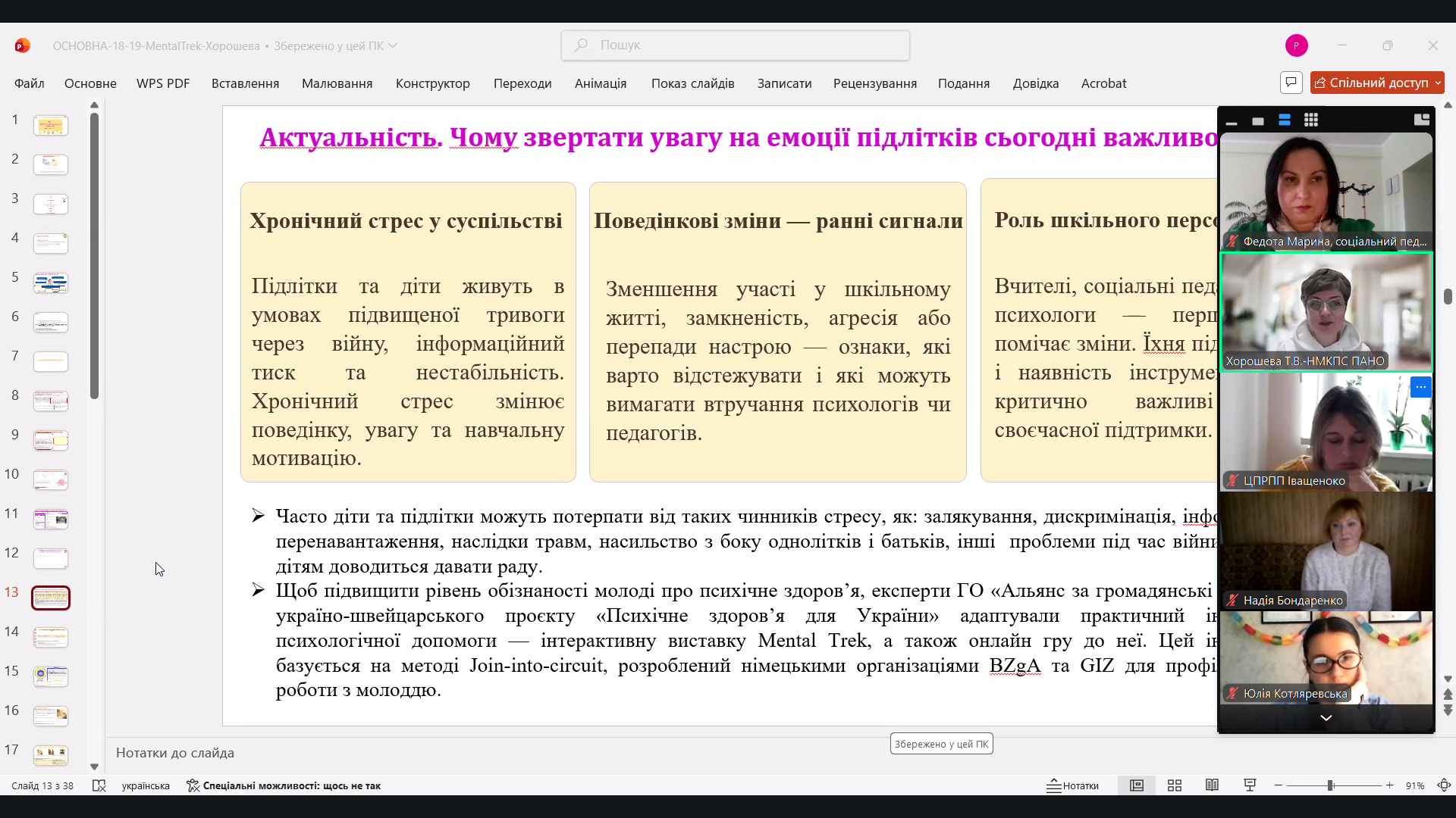 Захід об’єднав практичних психологів, соціальних педагогів, педагогів-організаторів та освітян області. Навчання було організовано Полтавською академією неперервної освіти ім. М.В.Остроградського, у партнерстві з Центром знань з неінфекційних захворювань КП «Полтавський обласний центр громадського здоров’я Полтавської обласної ради».