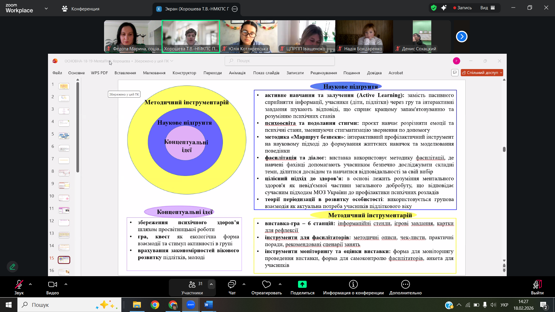 Перший день був присвячений глибокому зануренню в тему психічного здоров’я – від базових понять до особистого досвіду. Учасники систематизували базові терміни та ознаки ментального благополуччя, обговорили ключові положення Закон України «Про систему охорони психічного здоров’я в Україні», роль закладів освіти у формуванні культури психологічної підтримки.