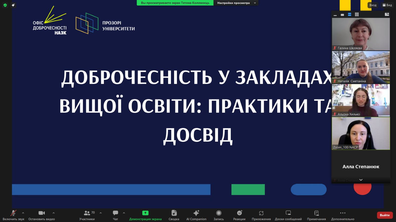 12 березня 2026 року науково-педагогічні та педагогічні працівники Комунального закладу вищої освіти „Кременчуцька гуманітарно-технологічна академія” долучилися до заходу в межах проєкту „Прозорі університети”, ініційованого Офісом доброчесності НАЗК „Доброчесність у закладах